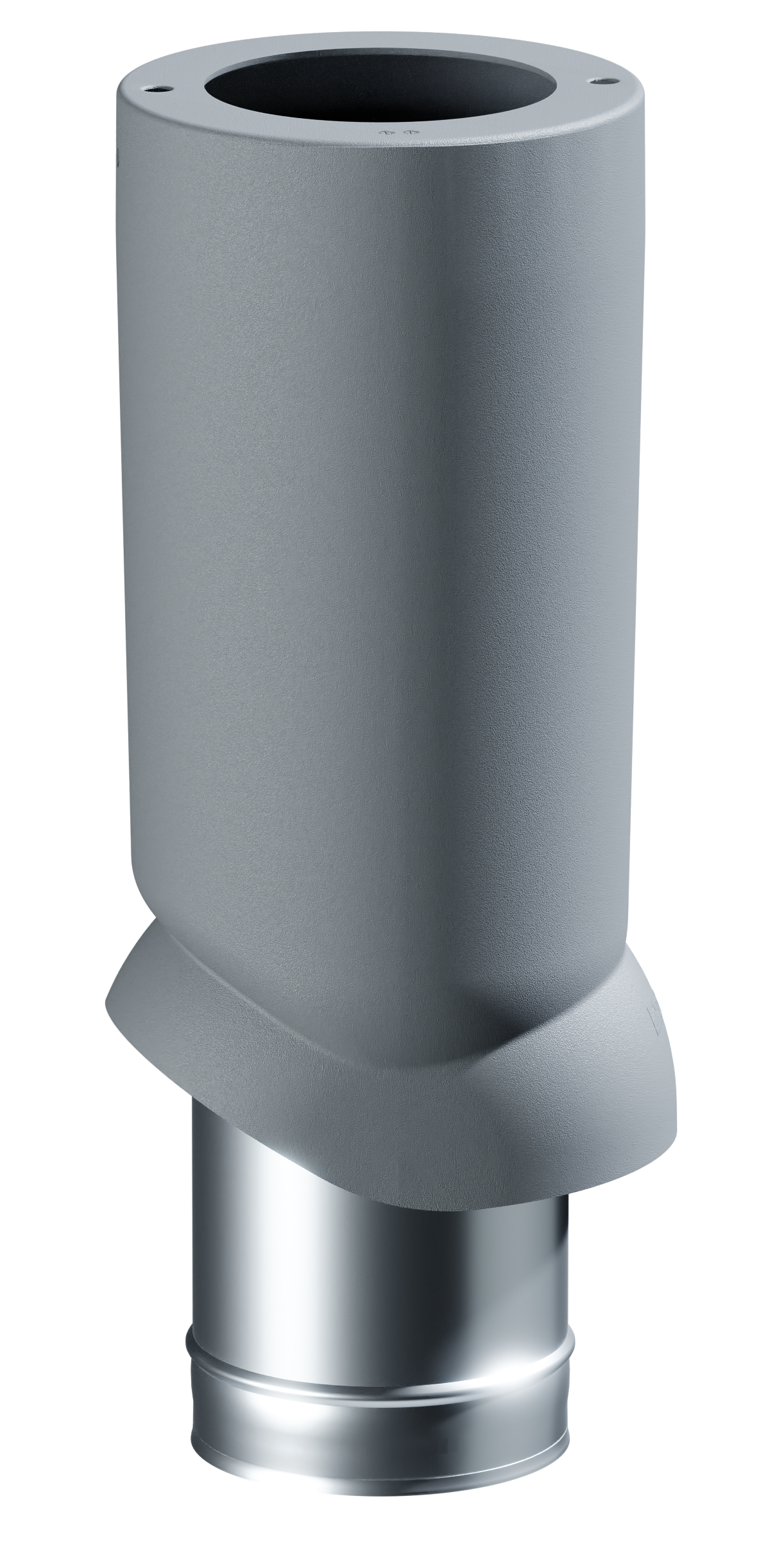Собранный вентиляционный выход ИЗЛ-160/700 устанавливается на скатную крышу через проходной элемент для соответствующего типа кровельного покрытия.
